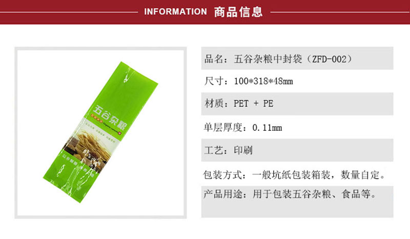 產品展示 >> 中封四封邊復合袋 >> 五谷雜糧風琴袋 中封袋 綠色食品包裝袋