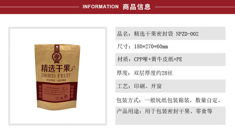 產品展示 >> 牛皮紙休閑食品復合袋 >> 黃牛皮紙開窗磨砂干果休閑食品包裝袋 紙塑復合袋