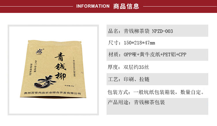 產品展示 >> 紙塑復合袋 >> 牛皮紙復合pet鋁箔袋 自封自立茶葉包裝袋