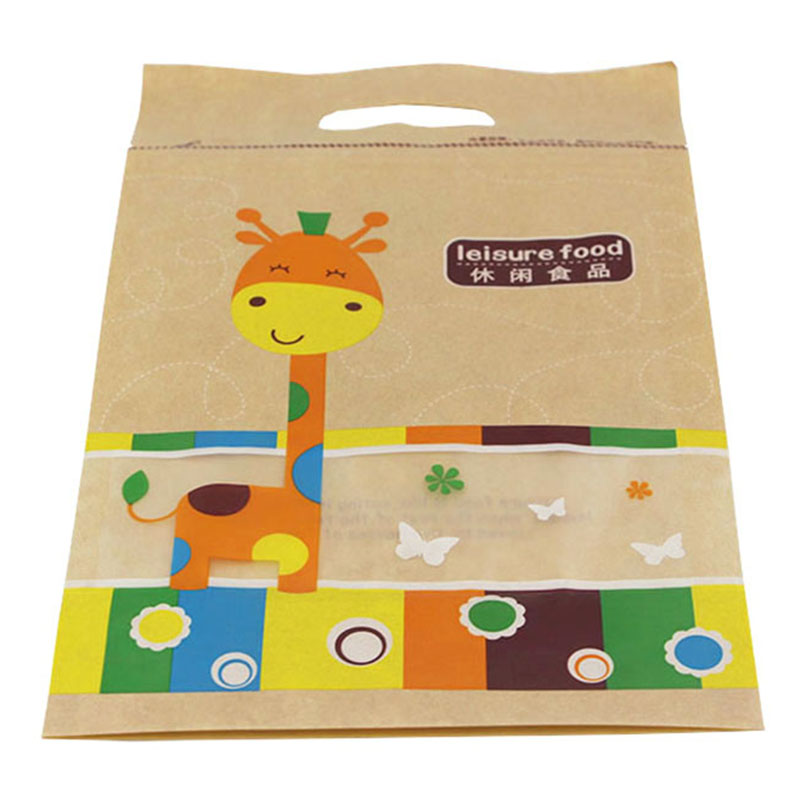 產品展示 >> 牛皮紙休閑食品復合袋 >> 休閑食品包裝袋 牛皮紙復合手提袋 磨砂透明禮袋